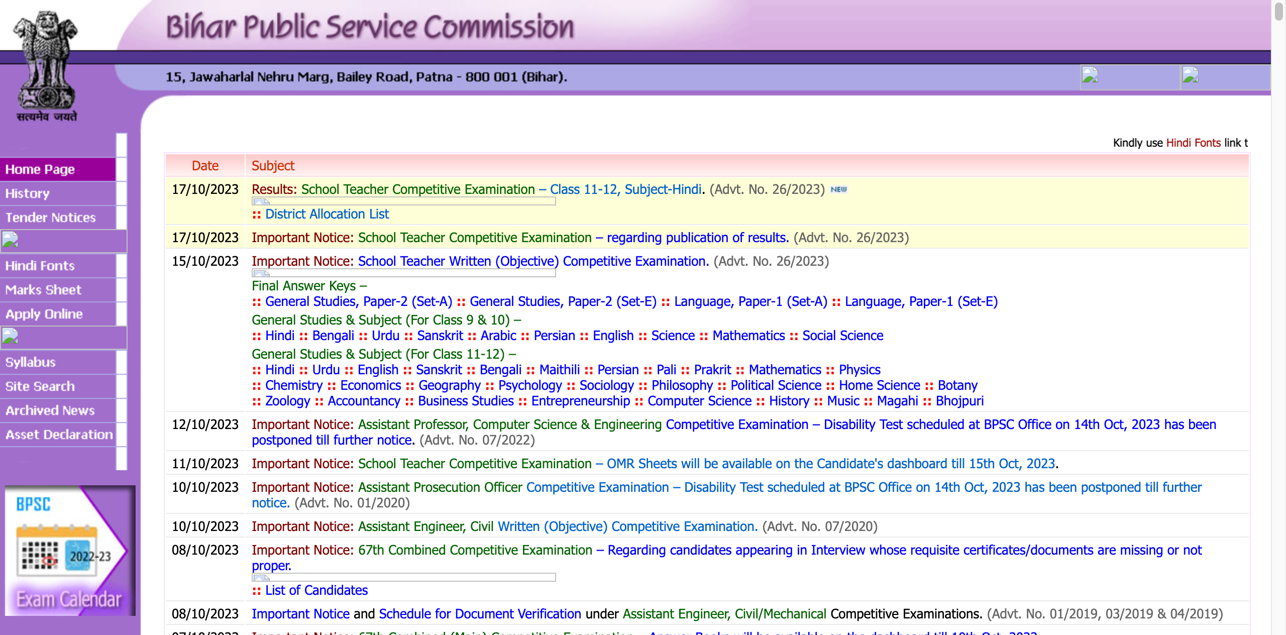 BPSC Teacher Result 2023 release date | 17th october 2023 |