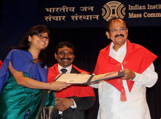 Shri. M Venkaiah Naidu,Minister of Information and Broadcasting participated in the49thConvocationofIndian Institute of Mass Communication, New Delhi.He conferred diplomas to the students. Addressing the students, he said that the process of transforming IIMC into a University is underway. IIMC would provide a platform for creating various innovative programmes. He appreciated the institute which is playing an important role to meet the growing demand of manpower in the industry and academia.