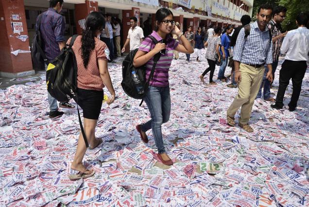 Printed posters lay strewn all over. These carried mugs of candidates of the Akhil Bharatiya Vidyarthi Parishad (ABVP), National Students Union of India (NSUI) and Chhatra Yuva Sangharsh Samiti (CYSS) - the students' wing of the Aam Aadmi Party (AAP) - contesting the September 11 polls.