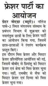 Freshers Party News in Amar Ujala - 22-10-16