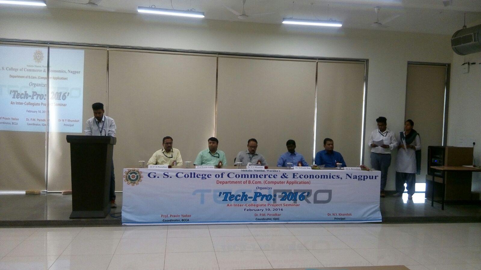 Tech-Pro: 2016 is a Project Seminar competition, which was successfully conducted by BCCA Department at Bajaj Bhavan,GS College of Commerce & Economics, Nagpuron 10 February, 2016. GS College of Commerce and Economics is one of central India’s oldest and most reputed institute for Commerce and Economics studies.College organises many technical events every year which is a very good platform for commerce students to present their skills.