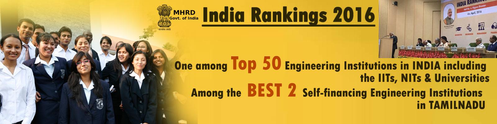 India Rankings 2016 by NIRF, MHRD, Govt. of India : Ranked 4th among Top 5 Private Engineering Colleges in India | Ranked 2nd among Top 5 Private Engineering Colleges in TamilNadu.