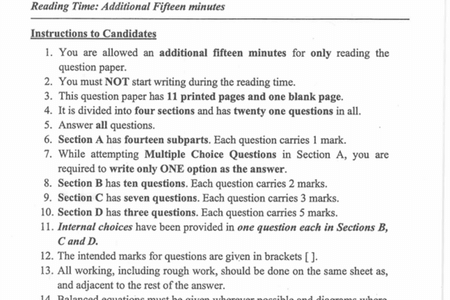 Note that before starting the exam, the candidates will be given Chemistry questions to read at 1.45 PM. They will not be allowed to start answering before 2 PM.
