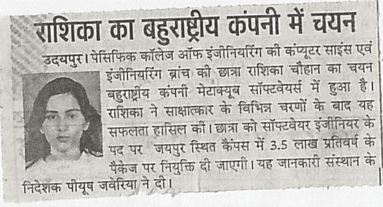 Student of Computer Science Engineering Placed inMeta Cupes Softwaresa Multi-national Company on the package of 3.5 lac per annum.