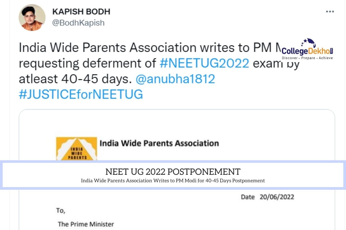 NEET UG 2022 Postponement: Echoing the demands of NEET UG aspirants and their parents, the India Wide Parents Association has written to PM Shri Narendra Modi to postpone NEET 2022 by 40 to 45 days. Know more here.