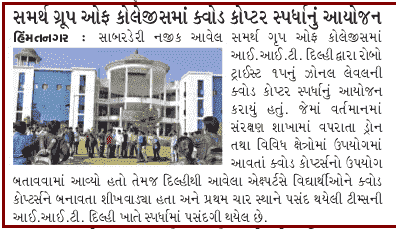 Quad Copter Competition by Robo Tryst-2015 was organized under the guideline of IIT Delhi at Samarth Campus. Students actively participated and gained