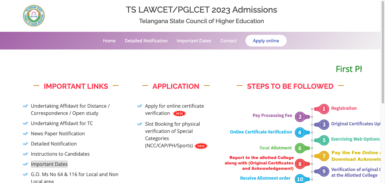- Visit the official website lawcetadm.tsche.ac.in/
