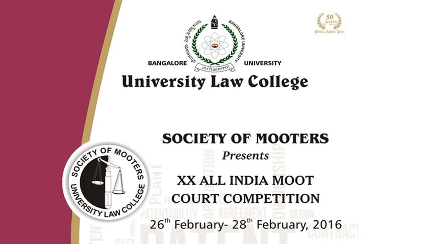 The (20th) XX All India Moot Court Competition is being organized by University Law College, Bangalore. The venue of the event is the University Law College, Bangalore University, Bangalore.
