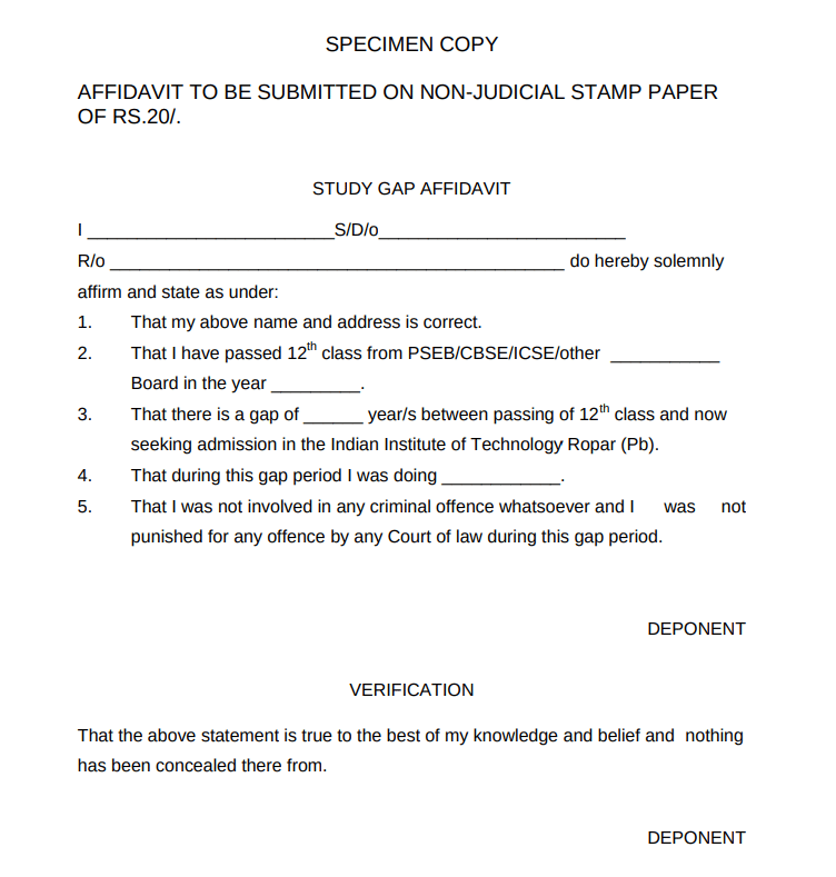 - The JoSAA Gap certificate should be notarised and should be submitted with an affidavit on non-judicial stamp paper of INR 20