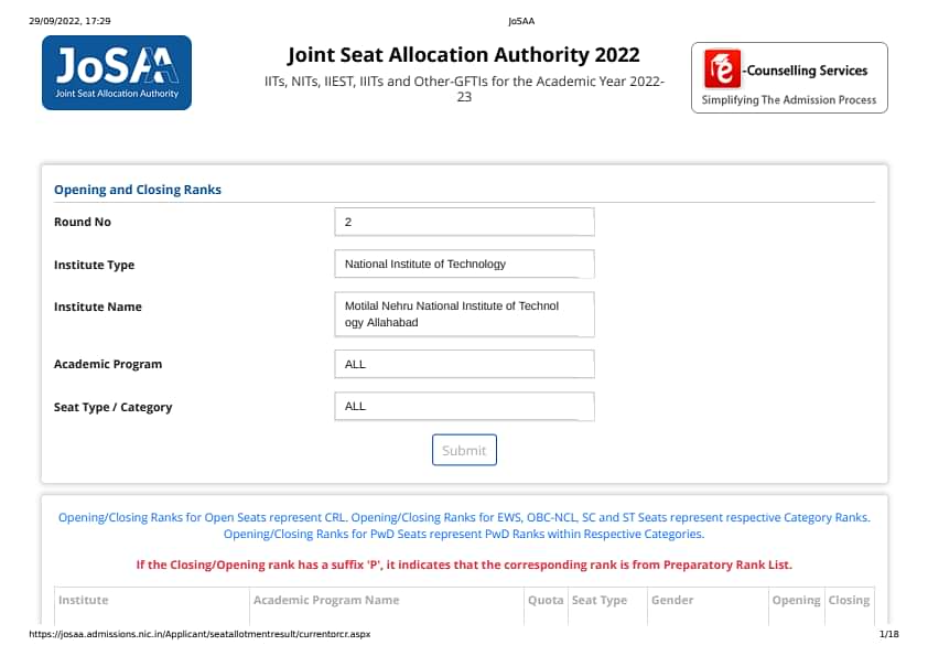 - JoSAA 2024 MNNIT Allahabad Round 2 Cutoff