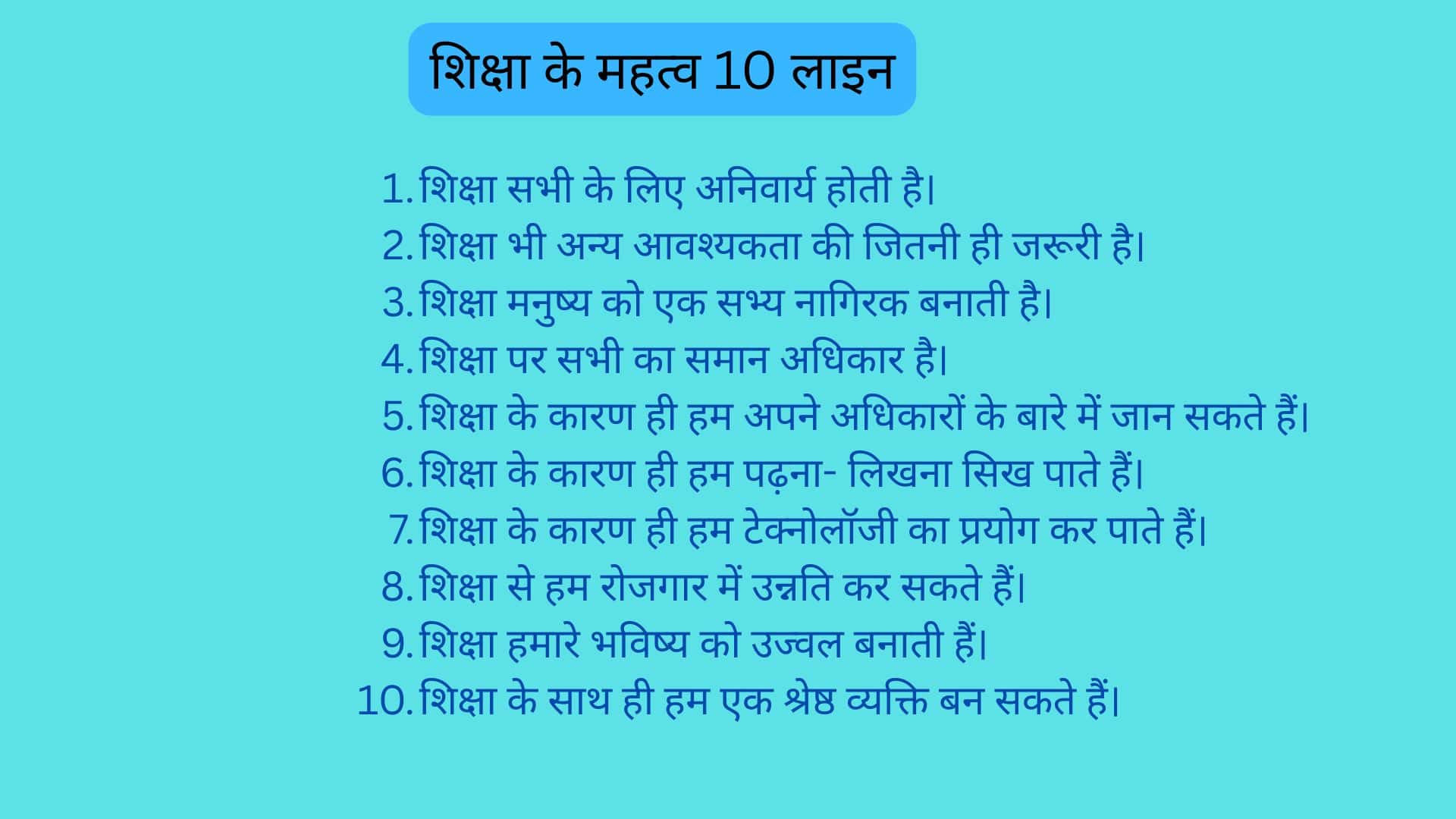 शिक्षा के महत्व 10 लाइन (Shiksha ka mahatva 10 lines in Hindi): शिक्षा के महत्व पर हिंदी में निबंध 10 लाइन में
