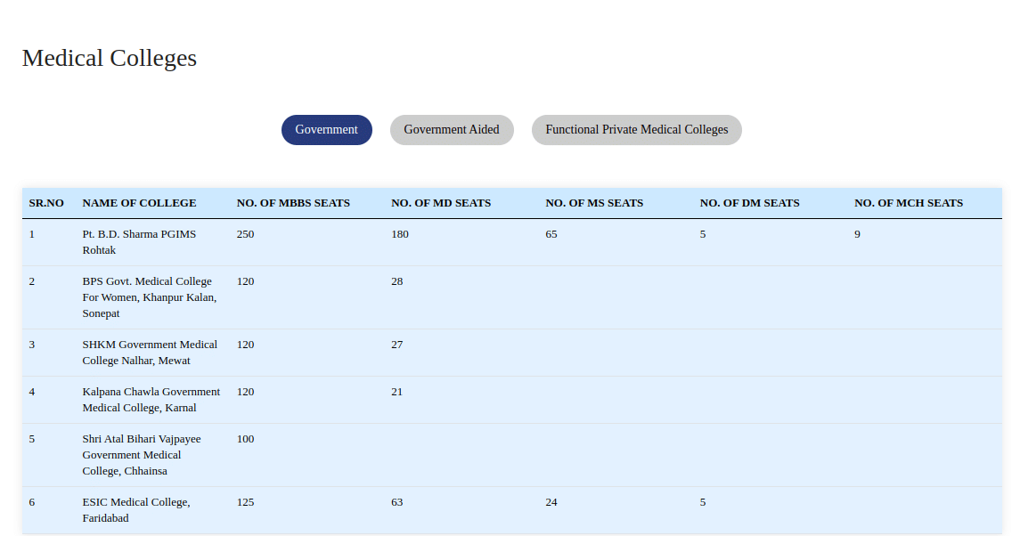 हरियाणा नीट सीट आवंटन सूची राउंड 2 सूची | सितंबर, 2025 |