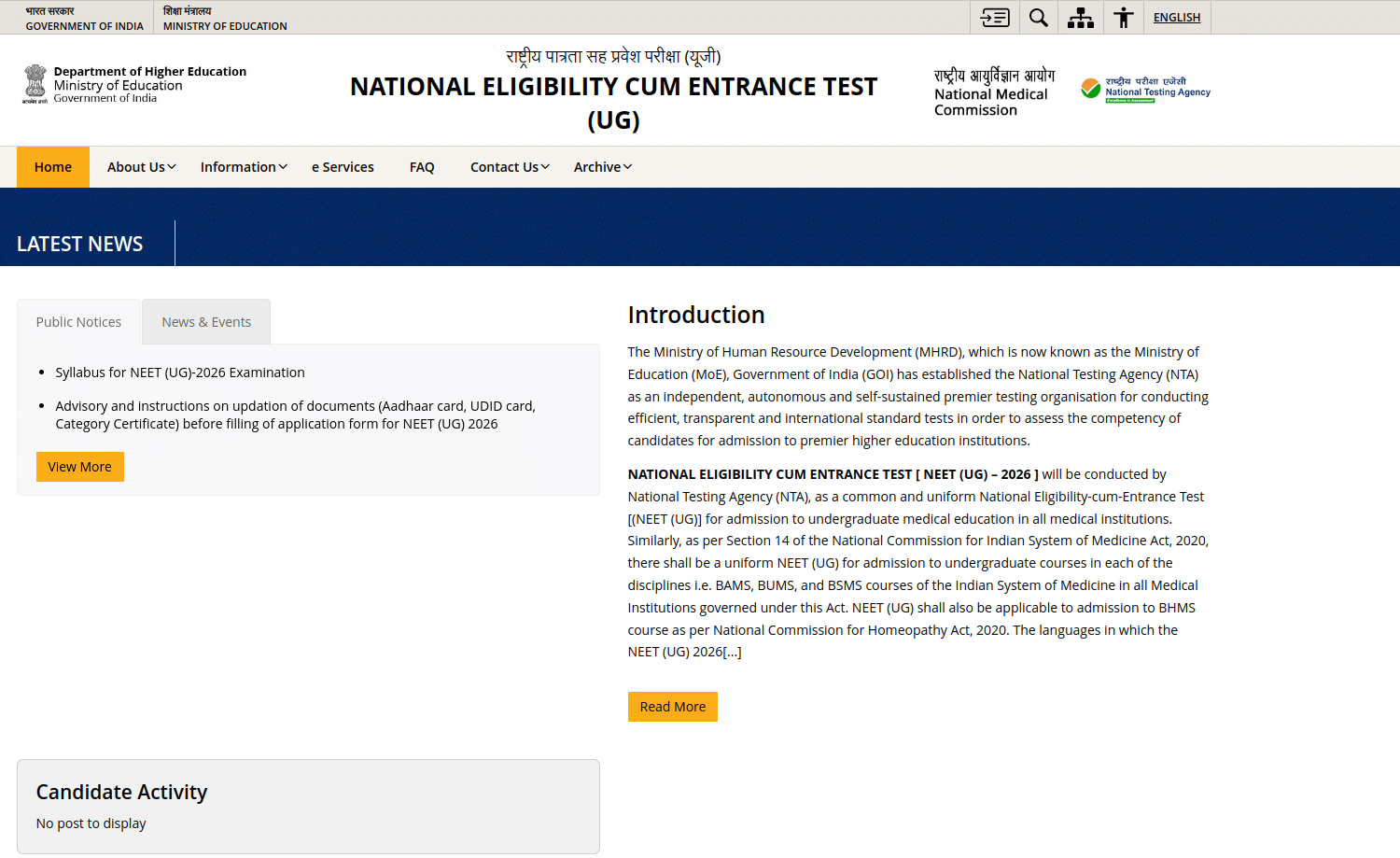 - सबसे पहले नीट की आधिकारिक वेबसाइट neet.nta.nic.in पर जाएं।