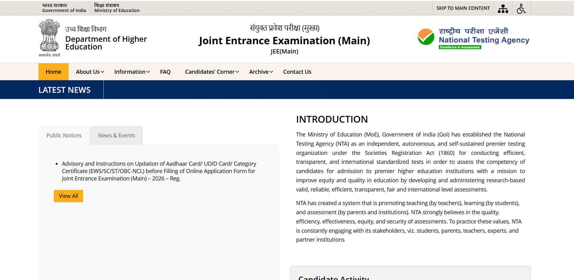 - एनटीए जेईई मेन 2026 ऑफिशियल वेबसाइट - jeemain.nta.nic.in पर जाएं।