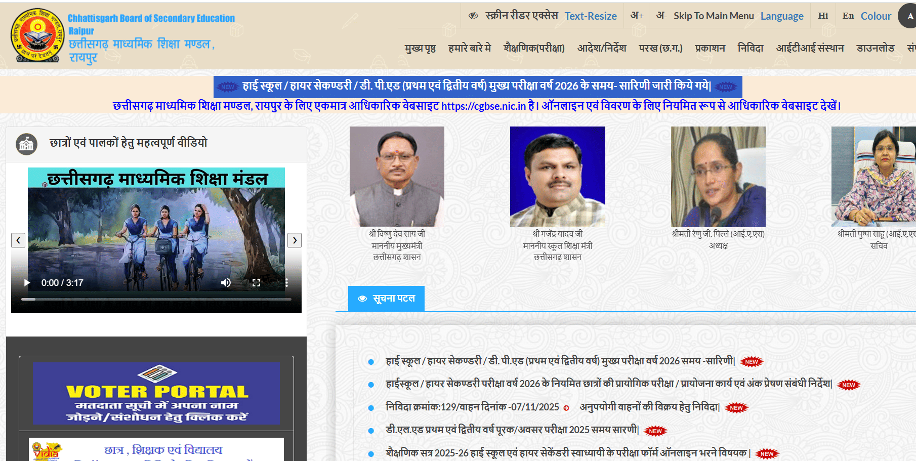 सीजीबीएसई 10वीं ऑफिशियल वेबसाइट 2026 | cgbse.nic.in |