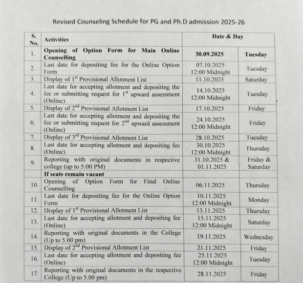 | 1. | ऑनलाइन काउंसलिंग विकल्प फ़ॉर्म डेट 2025 | 30.सितम्बर.2025 | मंगलवार |
