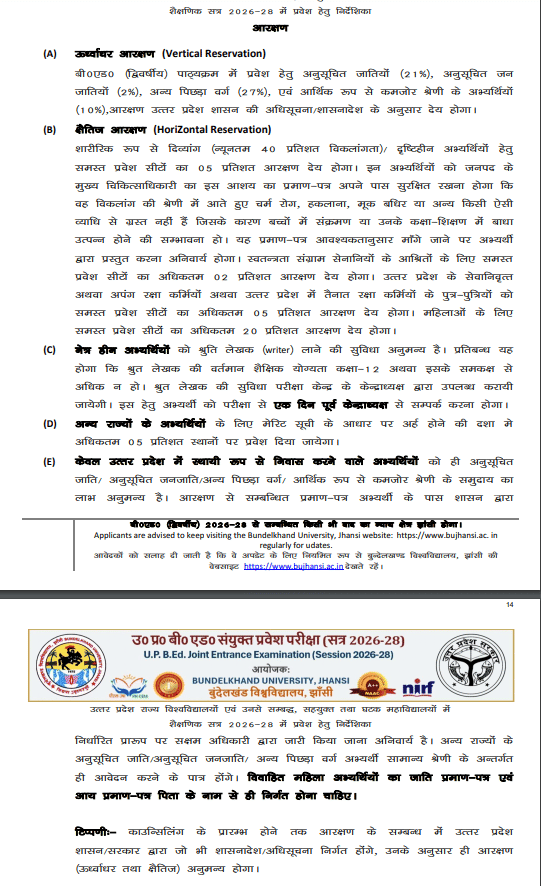 इच्छुक उम्मीदवारों के लिए यूपी बी.एड जेईई रिजर्वेशन पॉलिसी 2026 (UP B.Ed JEE Reservation Policy 2026 in Hindi) की डिटेल्स जानें -