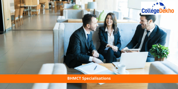 BHMCT स्पेशलायझेशनच्या यादीमध्ये प्रामुख्याने पर्यटन, पाककला आणि अन्न उत्पादन आणि व्यवस्थापन यांचा समावेश होतो. बीएचएमसीटी अभ्यासक्रमासाठी या स्पेशलायझेशनमध्ये संस्थात्मक केटरिंग आणि बँक्वेटिंग प्रॅक्टिकल, इंटरनॅशनल बिझनेस मॅनेजमेंट, इंडियन कुकिंगची मूलतत्त्वे, पाककला कला आणि फूड स्टाइलिंग, इकोलॉजी इत्यादी विषयांचा समावेश आहे. पाचव्या सत्रात 20 आठवडे चालणाऱ्या औद्योगिक प्रशिक्षण अभ्यासक्रमाव्यतिरिक्त, उमेदवाराने प्राधान्याने या कार्यक्रमासाठी वैयक्तिक वर्गांना उपस्थित राहावे. अनेक संस्थांमध्ये, नियमित अभ्यासक्रमाव्यतिरिक्त किमान दीड महिना चालणारे सुट्टीतील प्रशिक्षण दिले जाते. या लेखात, आम्ही भारतामध्ये ऑफर केलेल्या BHMCT स्पेशलायझेशनच्या यादीसह त्यांची सरासरी फी, प्रवेश प्रक्रिया, करिअरची व्याप्ती आणि बरेच काही यावर चर्चा करू.