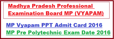 Madhya Pradesh Pre Polytechnic Test 2016. It is conducted by Madhya Pradesh Professional Examination Board.