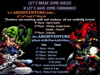 The festival is one of the biggest inter college Architecture students festival in Nagpur. ARCHIVENTURE-2016 will have Sports, Cultural and Design competitions.