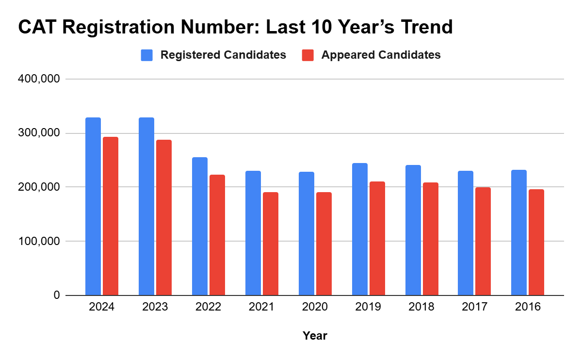 CAT 2025 Registrations witness DropCAT 2025 Registrations Witness Drop: The number of candidates who have registered for CAT 2025 exam seems to have dropped compared to the previous years. According to a notification released by IIM Kozhikode, CAT 2025 admit cards have been generated for only 2.95 lakh candidates. This is a notable decrease from the total number of candidates who registered for CAT 2024, which was 3.29 lakhs, and CAT 2023, which was 3.28 lakhs.