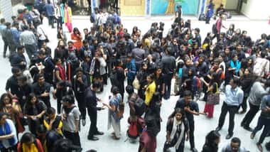 Around 250 students gathered in black dress code for a silent protest at the quadrangle of the Bannerghatta Road Campus against the resignation of Thejas, a faculty member of the Economics Department. The professor was asked to resign as he had refused to deduct the attendance of the students who did not follow the dress code of the institution.
