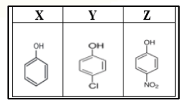 Ques. The correct order of acidic strength among the following organic compounds is: