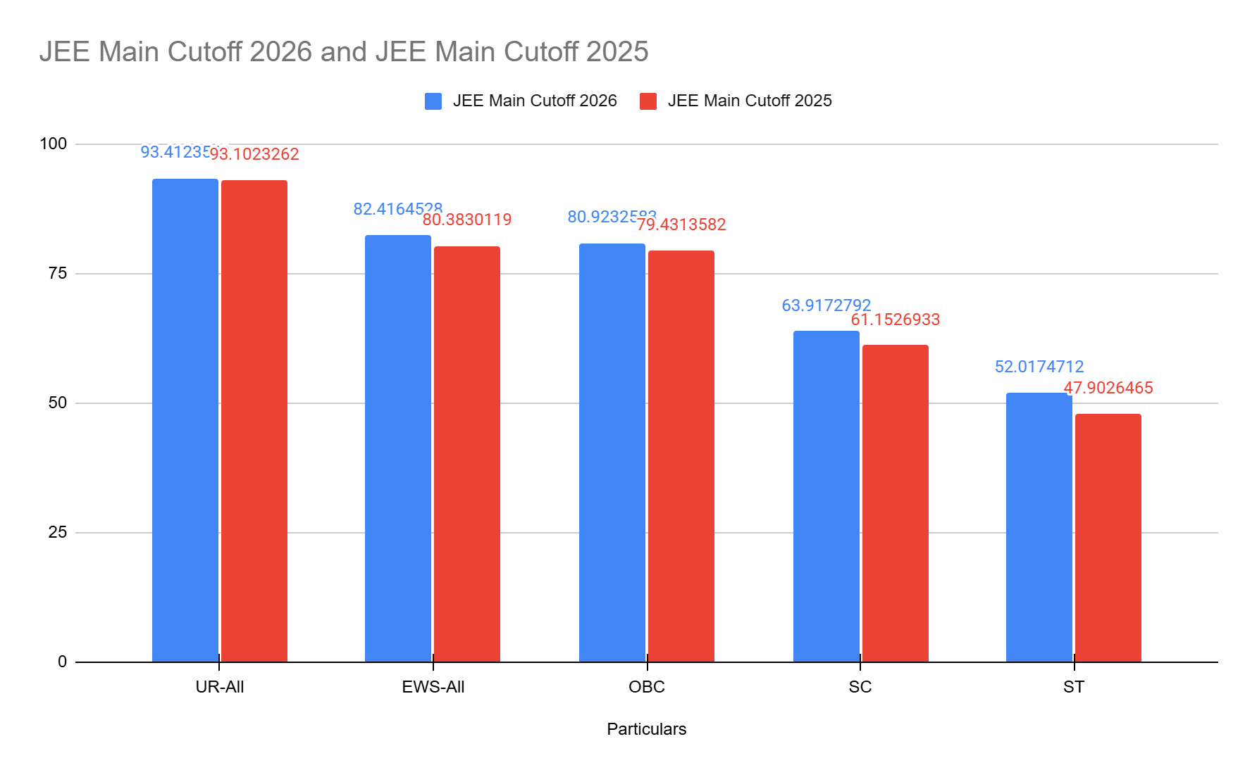 Using a graphical representation, the comparison between the JEE Main Cutoff 2026 vs 2025 has been done here.