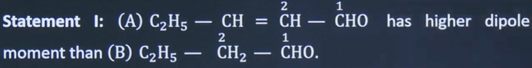 Statement II: C1 – C2 bond length in (A) is longer than (B)