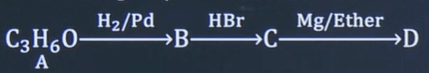 D is treated with A followed by hydrolysis to give 2,3-dimethyl-butan-2-ol. Then identify A, B, C.03 30 AM IST - 05 Apr'25