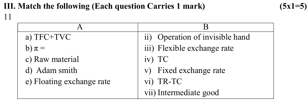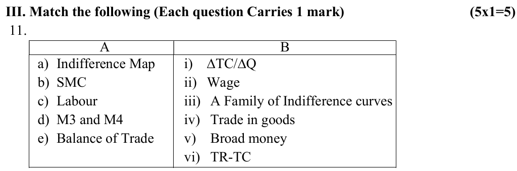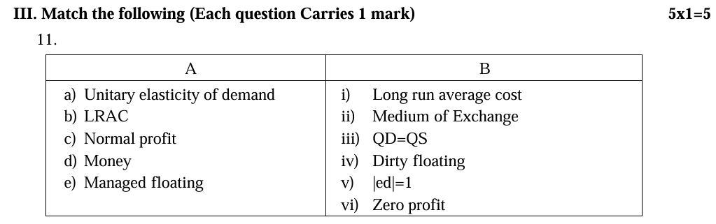 Section A (III) (Match the following)